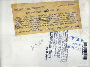 Mrs. Mayne Brady Crane balked efforts of eight courtland police officers to serve eviction paper until tear gas forced her out of minipolis apartment.