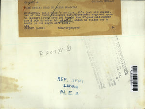 There's no fire, Paul Savelief bought a 27 year old pump for $305 to water his Gladioli which he raise for a hobby on his eight acre plot. It is the old engine of two of the South Milwaukee Fire Department Engine