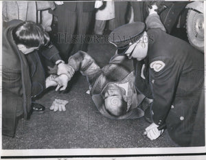 1958 Press Photo Police struggle with Kenneth Bender, 29 after he went beserk