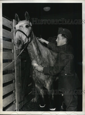1937 Press Photo Private Edward Schuurman while grooming "Silver Star."