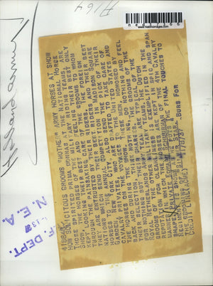 Those spirited prima donnas at the National Horse Show, the horses of the Military Riding Teams are kept looking their best and feeling their best only throught the painsaking care of the grooms to whom they are entrusted by their riders.The foreign nations send their best riders and horses to the annual competition in Madison Square Garden, New York City. They also send the pick of their calvary privates who are drafter to take care of the horses on the voyages to the United States and back and during the show. The grooms of the Royal Netherlands Army Team are typical of the grooms of other military teams. The Dutch reputation for cleanlinessis exemplified in the manner in which the horses are kept in spic and span shape. Private Edward Schuurman of the 4th Calvary Regiment is shown as he puts the final touches tot he grooming of "Silver Star."