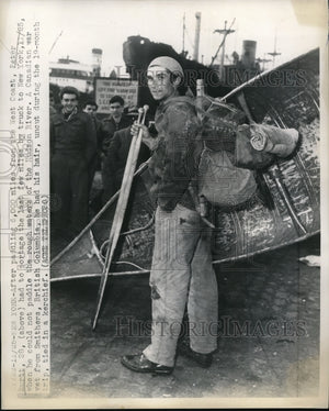 1947 Press Photo Peter Burtt pictured after paddling 6,000 miles from west coast