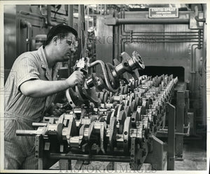 1967 Press Photo Thomas H. Oswald Removes V-8 Crankshaft