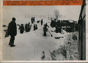 1940 Press Photo Workmen Dig Out Locomotive Stuck In Snow Drifts