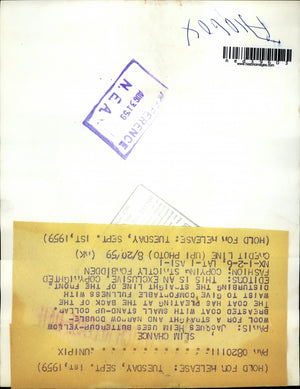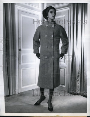 1959 Press Photo Jacques Heim Uses Buttercup-Yellow Wool For A Straight Coat