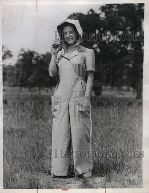 1941 Press Photo Woman Wears A Quick-To-Put-On Suit For Indoor Or Outdoor Wear