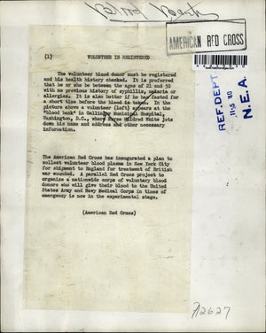 1940 Press Photo Volunteer at blood bank in Gallinger Municipal Hospital