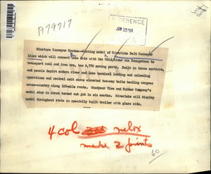 1954 Press Photo Miniature Conveyor System--working model of Riverlake