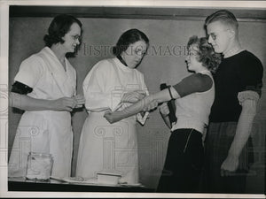 Submitting to blood tests by Dr. Zelma Herndon when a large number of the students took the test as part of the cityE™s fight on Syphilis.