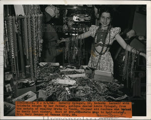1946 Press Photo Beverly Spiegel, 12, bedecks herself with trinkets bought by
