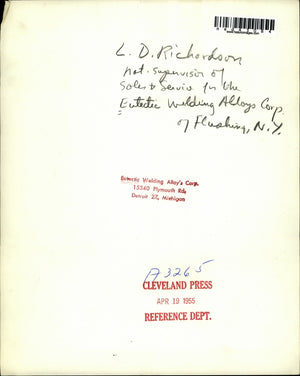 1955 Press Photo L.D. Richardson National Supervisor To Eutectic Welding Alloys