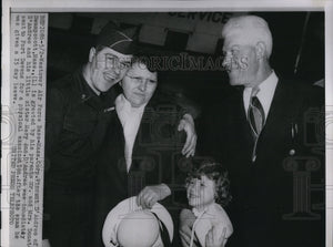 1953 Press Photo Westover AIr Force Bae Corp. Vincent D'andreois greeted by