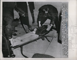 1951 Press Photo Policeman put body Dominic Di Liberte, 21, on stretcher after