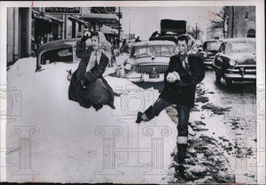 1953 Press Photo Marianne Daugherty played in Five inch snow in Kansas City Area