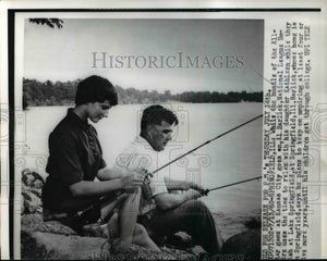 Photo shows Al Barlick, uses the time to relax with his daughter Kathleen while fishing.