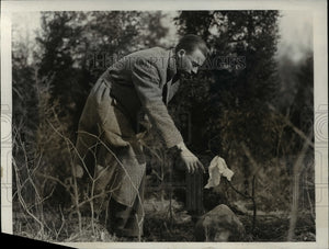 1931 Press Photo John Schutz is examining a 50 pound boulder which crushed