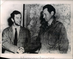 1951 Press Photo Leland Towers shakes hand with Homer Cox at a press conference