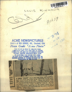 1950 Press Photo Louis Kinkopf, city's 28th traffic victim was very much alive