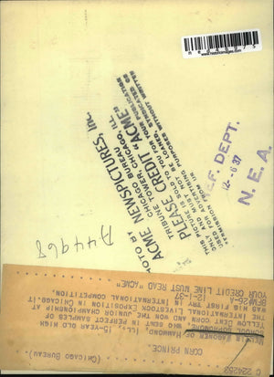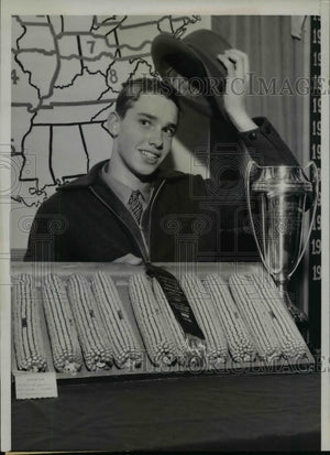 1937 Press Photo Melvin Wagoner sent samples of Yellow Dent Corn & won Jr Champ