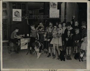 1940 Press Photo Alley gang line up their pets at benefit dog show