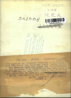 Joseph C. Glenn, telling Philadelphia Police Officer he found the body of his five year old daughter, Nancy, face down in the mud, about a mile from the Glenn home in a deserted lot in Philadelphia. The child had been missing for twelve hours, he believes that the child is a victim of a criminal assault. An autopsy was ordered.