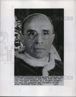 1954 Press Photo Vatican City Medical bulletin issued that Pope Pius XII has