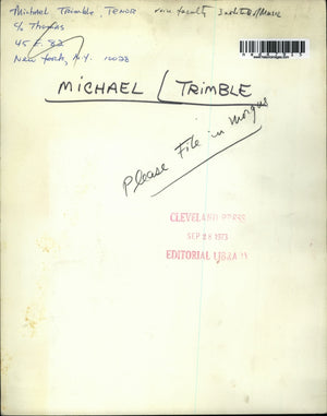 1973 Press Photo Michael Trimble,Tenor