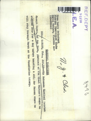 1938 Press Photo Cardinal on his way to Nassau for Vacation