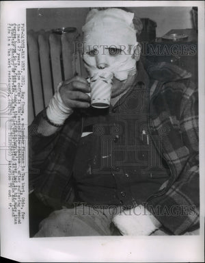 1956 Press Photo Ray Shupe volunteer fireman in Ven Wert after 2nd degree burn