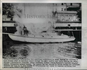 1951 Press Photo The fire at the auxilliary ketch after the explosion