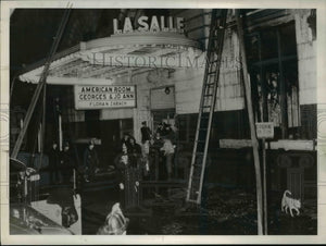 1948 Press Photo Chicago scene at entranc to Lasalle Hotel firemen and rescue