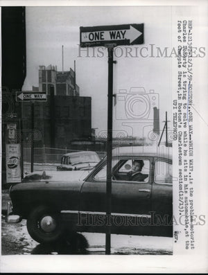 1959 Press Photo Charles Doherty as he sits in his automobile at Chappie Street
