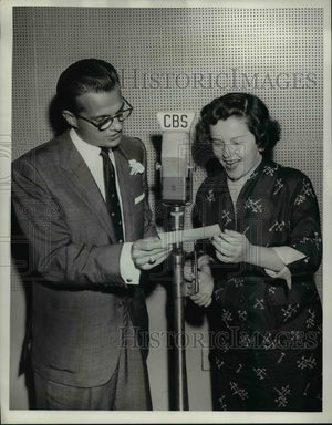 1953 Press Photo Miss Barbara Macon & Bill Cullen presenting check for jackpot