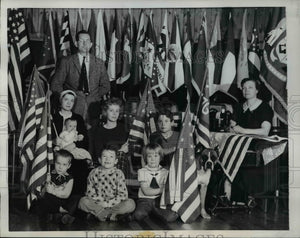 1959 Press Photo The Herlan Sime family with the 300 flags