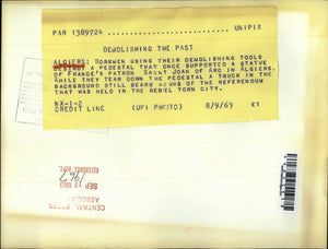1963 Press Photo Workmen Demolish Joan Of Arc Statue Pedestal In Algiers