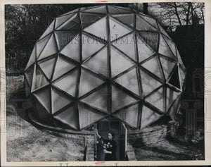 1958 Press Photo Mrs. Jennie Pope Outside Glass Dome of Home in Kingston Hill