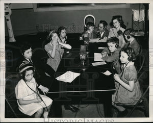 Left to right: DAvina and Gerald Hecht, aged 6 and 12; Joy Thurman, 9; Gabriel and Julian Ellington, 10 and 8; announcer Ben Grauer; Orsula Buckley, 15; Peter and Collin Saunders, 10 and 8; and Ann Tyler, 10.