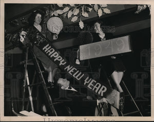 1948 Press Photo Hollander Vogue Room Happy New Year banner june Morten,