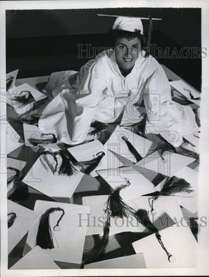1959 Press Photo Darlene Stauffer of Topeka Tries Assortment Of Graduation Caps