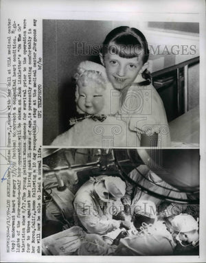 Mary Louise Sumrow with her doll at the UCLA medical center. She underwent heart surgery to correct a congenital heart condition.