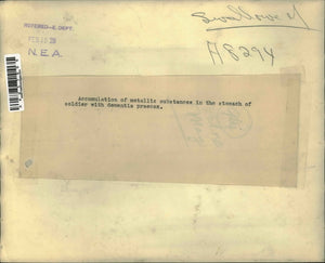 1928 Press Photo An accumulation of metal particles in soldier with dementia