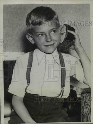 1937 Press Photo Jack Suoka Age 8 Hears for First Time From Plane Trip