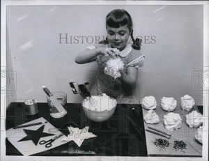 1956 Press Photo Little girl making snowball yule decoration from soap powder