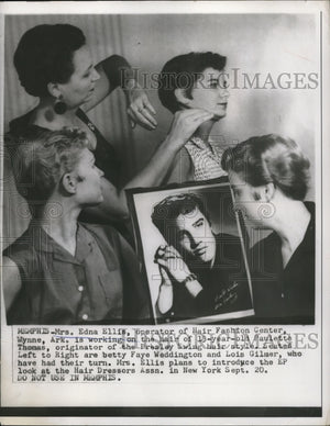 1956 Press Photo Mrs. Edna Ellis working on hair of Paulette Thomas
