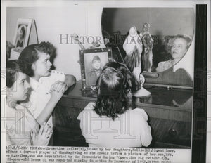1953 Press Photo Ernestine Aviles & Daughters Praying at Soldier Son's Picture