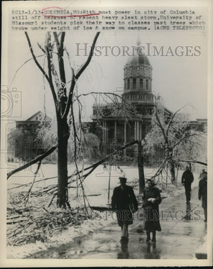 1949 Press Photo Columbia Mo heavy sleet destroys trees at the University