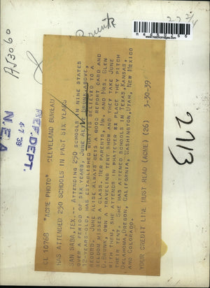 1939 Press Photo June Alice Brunk Attends 250 Schools in 9 States in 6 Years
