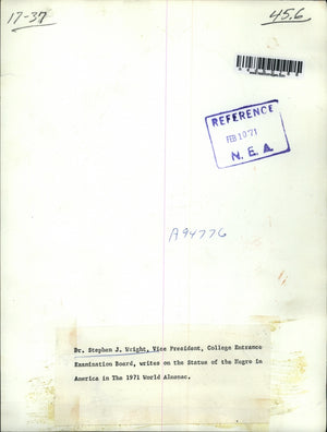 1971 Press Photo Dr Stephen J Wright VP College Entrance Exam Board