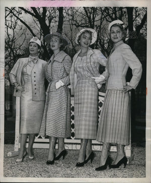 1955 Press Photo Models wearing "Chanterelle","Digitale","Lavande" and "Crocus"