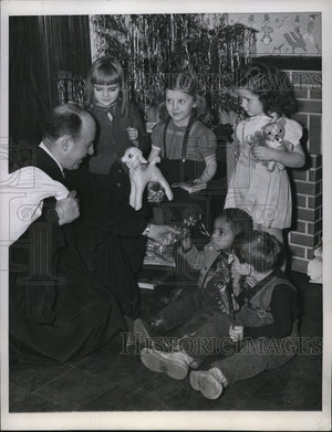 1946 Press Photo Judge Erwin A. Robson Distributes Gift to Children